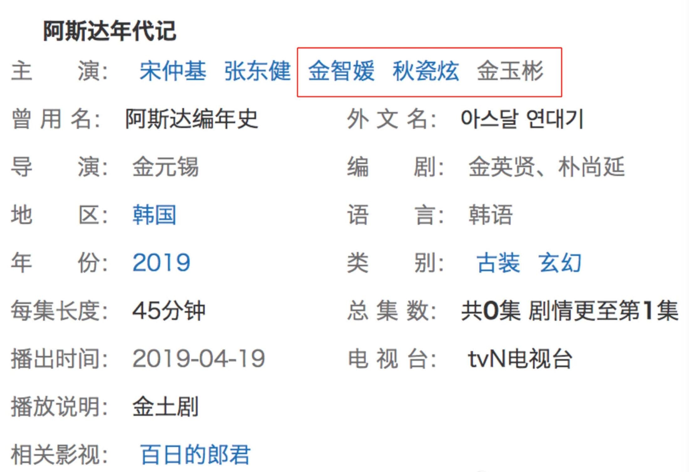 《阿斯达编年史》目前爆出的参演女艺人为金智媛,秋瓷炫,金宇彬,而金智媛为女主,秋瓷炫已经结婚生子,网友纷纷猜测,还女子为金玉彬。