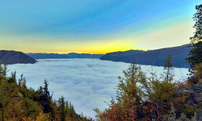 喀纳斯湖坐落于新疆的阿勒泰山脉的喀纳斯自然保护区,湖面45平方千米,蓄水54亿立方米。喀纳斯湖有三大奇观,其一是千米枯木长堤,是因喀纳斯湖中的浮木被强劲谷风吹着逆水上漂,在湖上游堆聚而成;二是雨过天晴时才有的奇景--