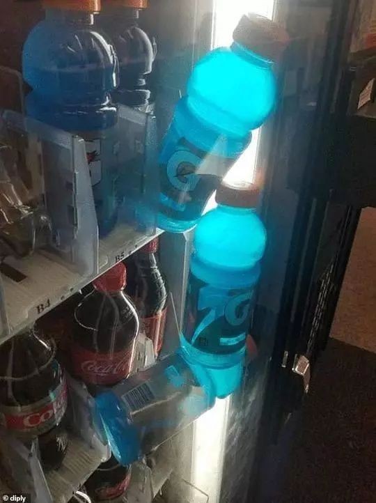 在自动贩卖机上买饮料,连买3瓶都被卡住。