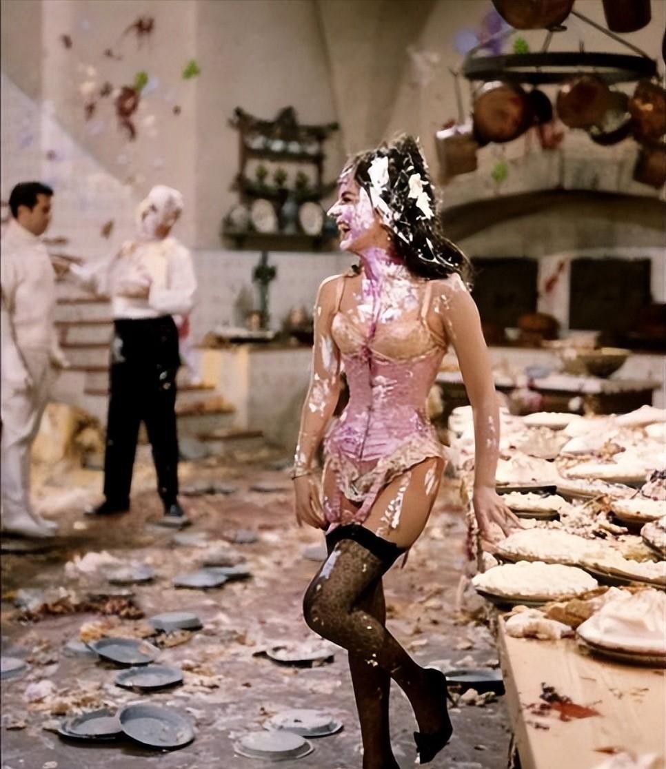 可以看到桌子上满满的都是蛋糕就连身上也是....