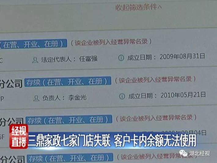 记者登陆国家企业信用信息公示系统,发现武汉三鼎位于武昌、洪山、江岸、汉阳和徐东的5家分公司全部被辖区工商列为经营异常名录。