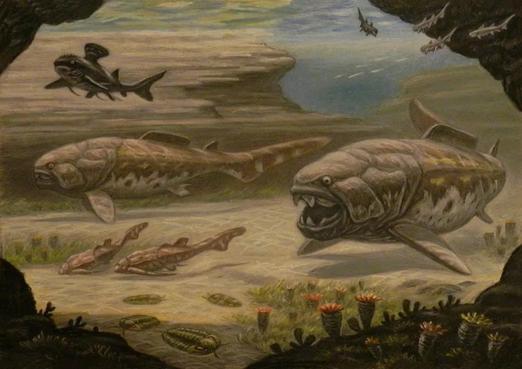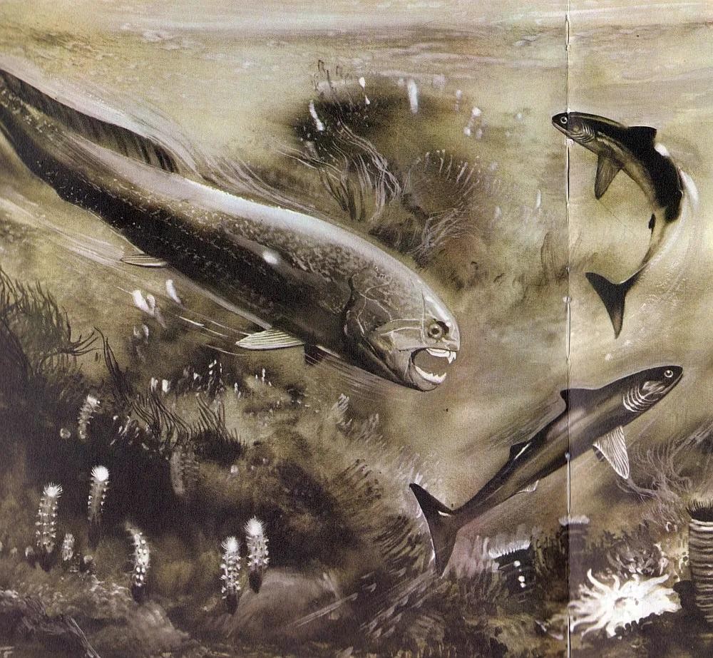 鱼类的历史可以追溯到距今5亿多年的寒武纪时期,但它们真正“发家”却是在泥盆纪。泥盆纪最凶猛的鱼类不仅比大白鲨还要巨大,而且嘴中长着恐怖的假牙!