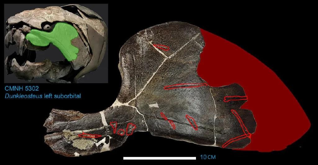 ▼邓氏鱼头骨上的咬痕|图片来源:参考资料2