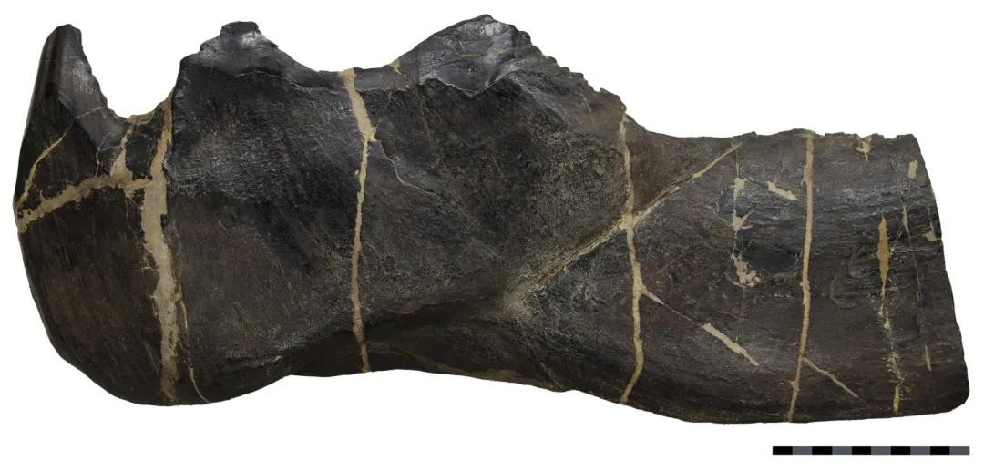 ▼邓氏鱼下颌化石,可以看到如刀刃般锋利的边缘|图片来源:维基百科