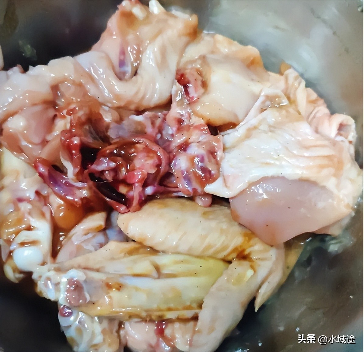 腌制鸡腿: 将鸡腿肉放入碗中,加入料酒、生抽、姜蓉、适量盐和胡椒粉,搅拌均匀,腌制15-20分钟,使调味料充分渗透入鸡肉。
