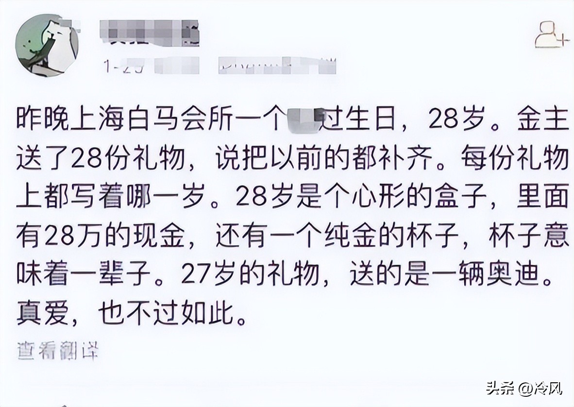 一名男模在社交平台上炫耀自己收到的天价生日礼物,引发轩然大波。