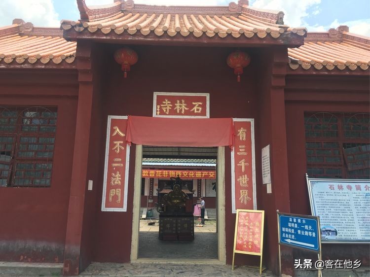 石林寺"石林高几许、稳中峰",展现在我们面前的就是五指奇峰。左侧的古建筑即是石林寺,它创建于明朝万历年间,寺内有"镇寺三千斤"---铁铸佛像、香炉鼎、大钟各重一千斤。