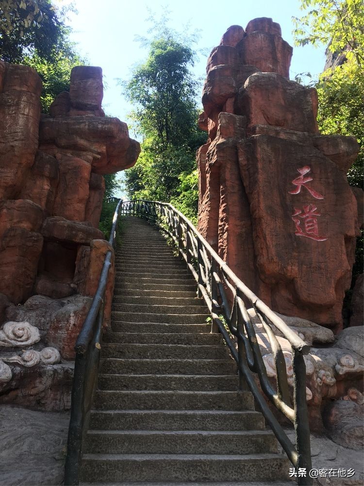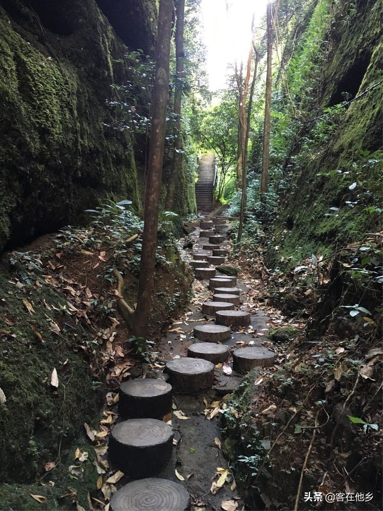 天道绕石山而建,曲折的栈道犹如盘在山腰的长龙,气势恢宏,脚下壮阔的林海及幽深的峡谷,还有奔腾的松涛,连成奇异迷人的景致。
