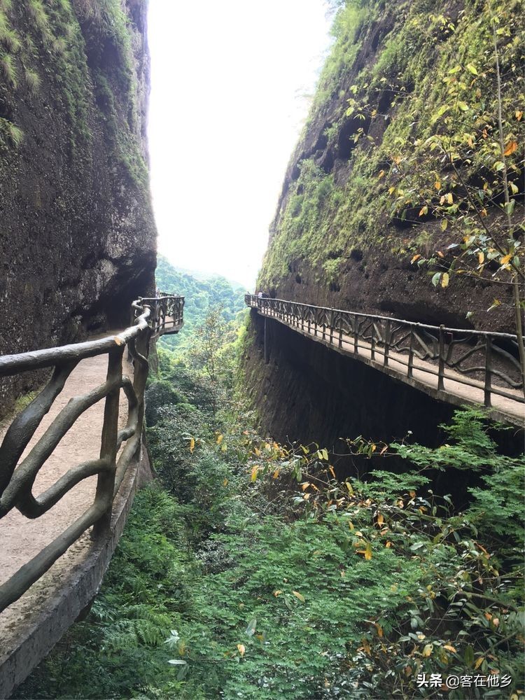 一步一景,站在栈道上可以远眺粤闽赣三省的旖旎风光。
