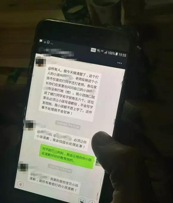 “这位家长必须让小孩写道歉信,不会写字发视频。”王莹在群里说。