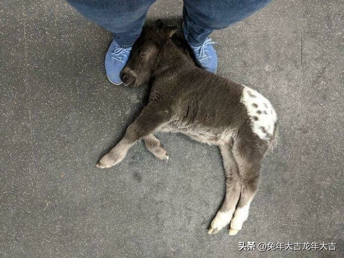 #3 这匹可爱的小马在兽医的脚上睡着了