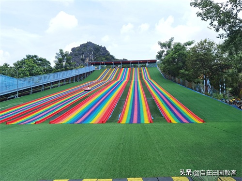 景区独特的石山山崖、河塘、绿树植被等天然风景,与众多形态各异的恐龙雕塑组成恐龙公园。公园很大,分为游乐园和恐龙谷两个区。有适合成人玩的过山车、激流勇进等刺激项目,有适合孩子玩的旋转木马、小火车、碰碰车之类儿童乐园、儿童王国。其中,9D云端玻璃桥较区内融水双龙沟玻璃栈道、乐业天坑俯视更让人膝盖、腿发软、心跳加快的感觉,恐龙危机4D电影、基因研究基地应是恐龙主题的公园里的亮点。