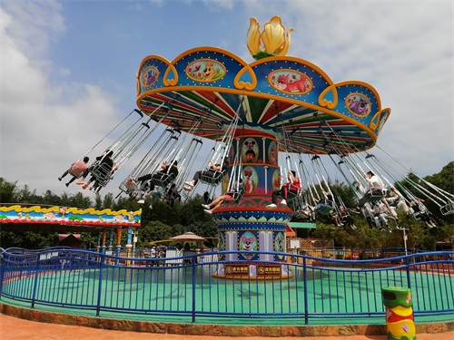 飓风飞椅又被称作摇头飞椅,或空中飞机,是一种集旋转、升降、变倾角等多种运动形式于一体的大型飞行塔类游乐设备。当伞形转盘和中间转台错位旋转时,塔身徐徐上升,此时转盘摇动,飞椅呈波浪荡漾状,游客犹如在空中飞翔、飘荡、海阔天空、惊心动魄。飓风飞椅游乐设备巍峨雄伟,它结合了美丽的灯饰和五彩缤纷的图案设计,造型华丽,安全可靠,是一个十分吸引游客的游乐设备之一,同时,也是是标准的主题公园或现代游乐场、景区游乐场等游乐场所的首选游乐项目之一。