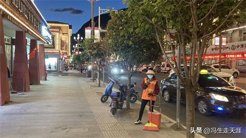 波密县城坚守岗位的清洁工人