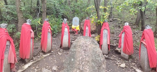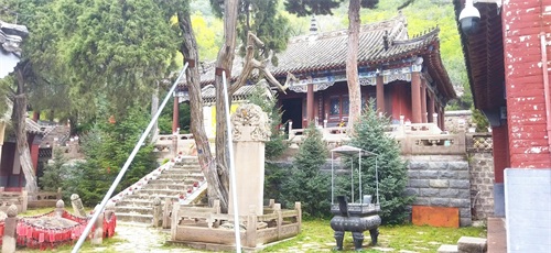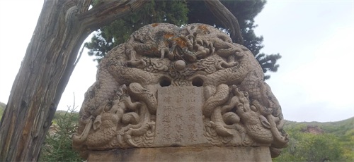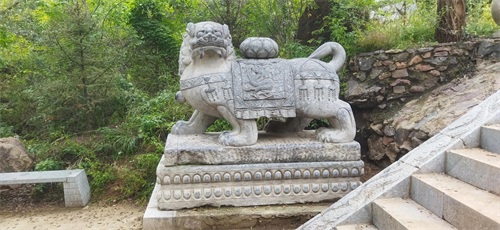 清康熙皇帝巡行该寺赞曰:“古木苍山路不穷,霜林飒沓响秋风,临流驻跸归营晚,坐看旌旗落日红”。