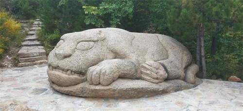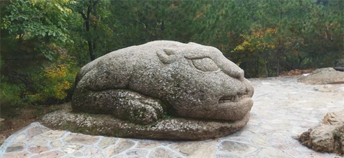 这具石雕卧狮,不知那个朝代留下,颇具喜感,笑迎八方来客。