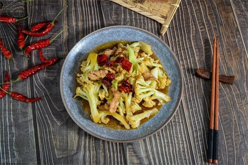 1.将花菜洗净,焯水煮10分钟捞出备用。