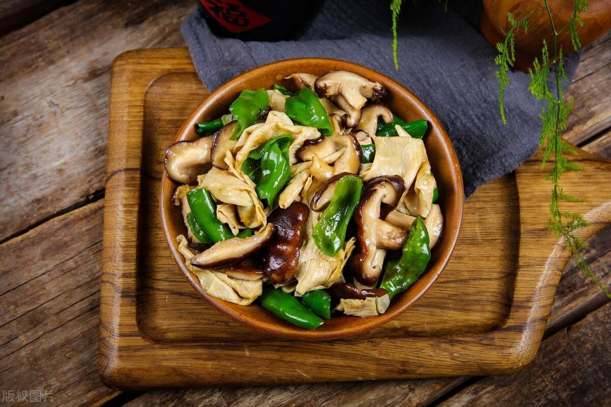 1. 干香菇泡软切片,腐竹泡软切段备用。