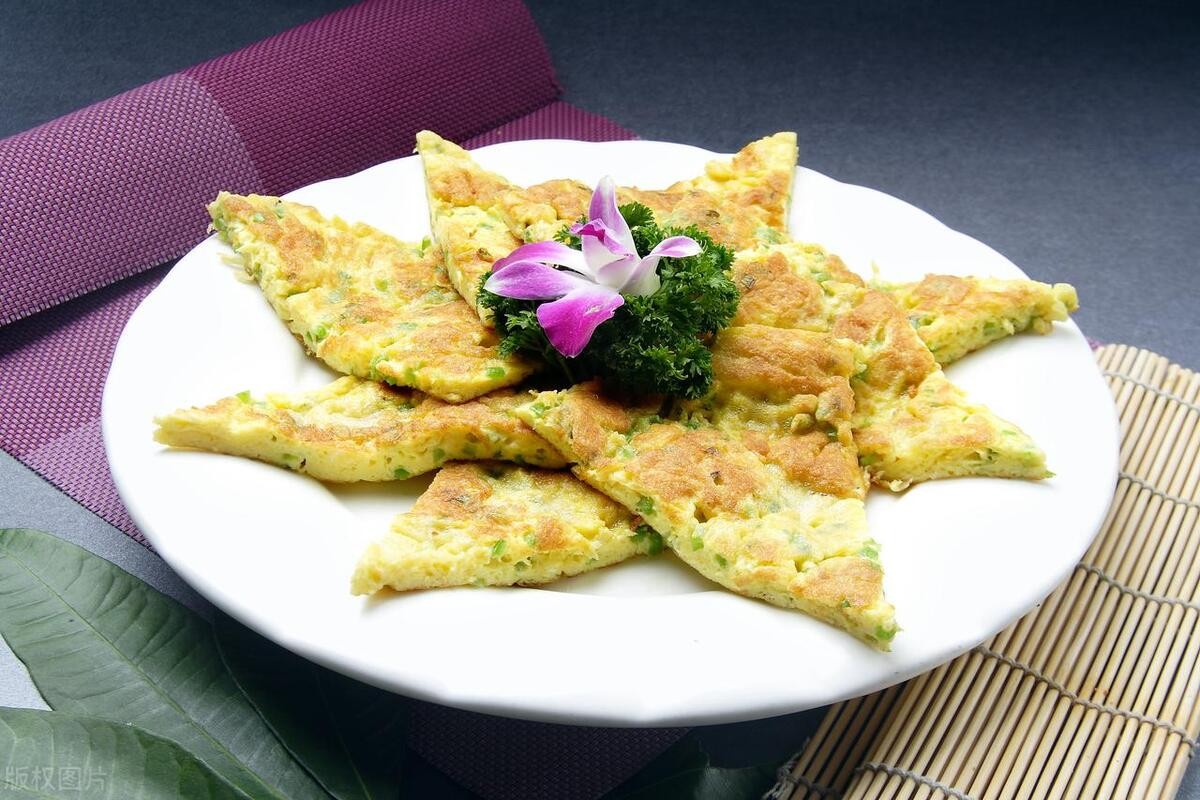 3. 热锅加油,倒入蛋液,摊成一片薄饼,放入圆白菜煎至两面金黄即可。