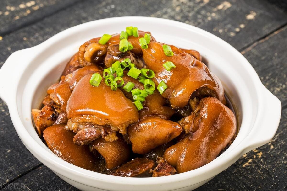 1. 猪蹄去毛洗净,切成大块,放入热水中焯水。