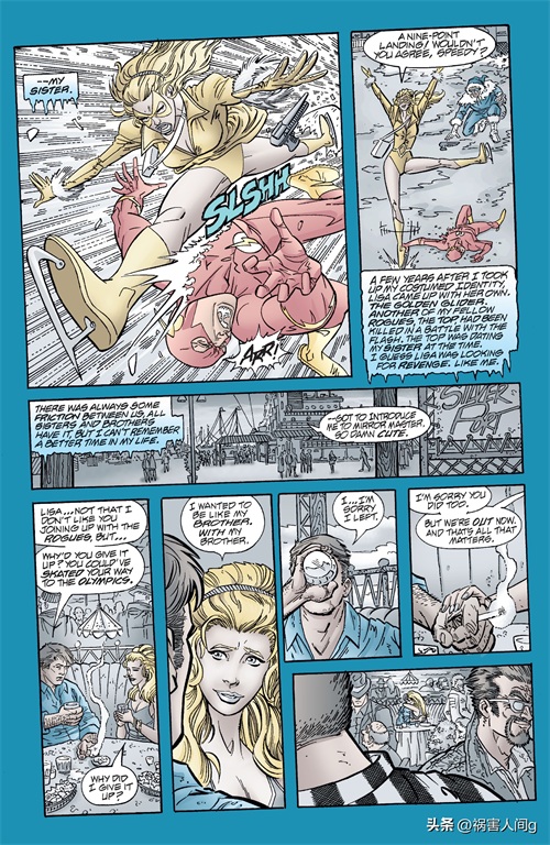 他的妹妹丽莎从小就喜欢滑冰,在伦纳德离家出走,成为罪犯以后,丽莎成为了享誉国际的花样滑冰运动员,以花样滑冰巡回演出的名义逃离了被虐待的家庭。而丽莎的教练兼情人罗斯科.狄龙实际上也是个反派,被称为“尖峰(The Top)”,死于与闪电侠的战斗。丽莎发誓要给罗斯科报仇,成为了金色滑翔者,并开始与哥哥伦纳德合作。