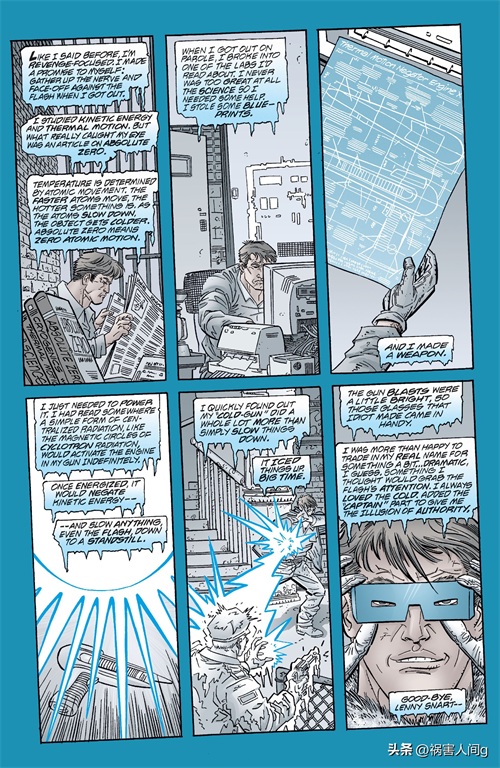 并且他制造的一种冷冻干燥枪能够产生一种不能融化的化合物,还能释放零度以下的爆炸,针对人的分子结构,包括闪电侠的分子结构。