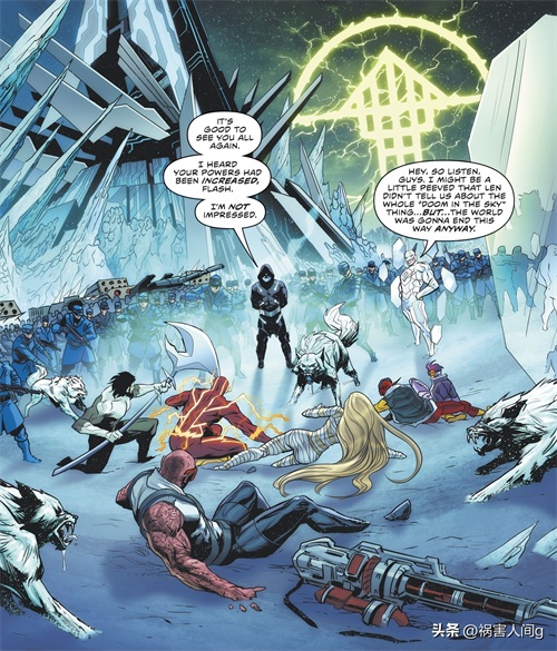 寒冷之王一瞬间就将除了闪电侠之外的所有人全部冻结。