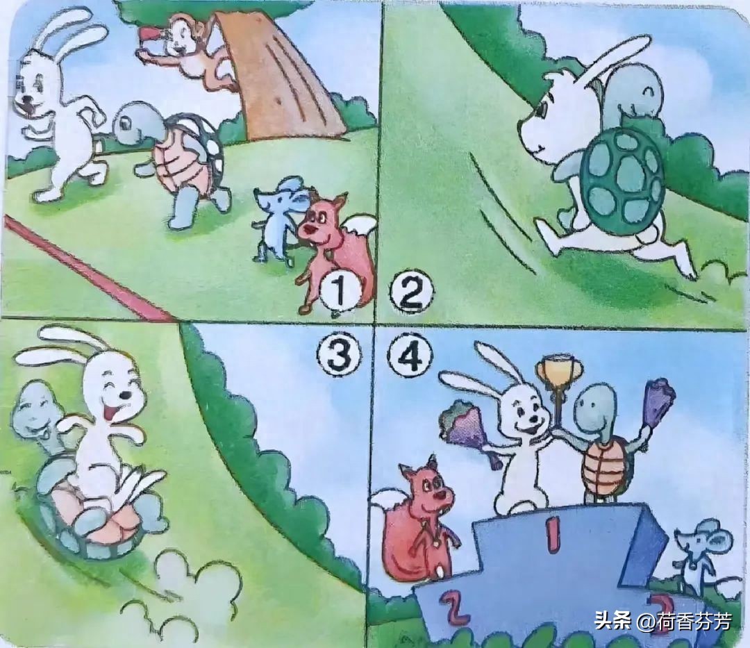一年一度的动物狂欢开始了,比赛有田径、篮球、跑步。跑步项目的参赛者是兔子、乌龟、老鼠、松鼠,猴子做裁判。其中,乌龟和兔子打算用“合体赛跑法”来跟其他动物一决胜负。
