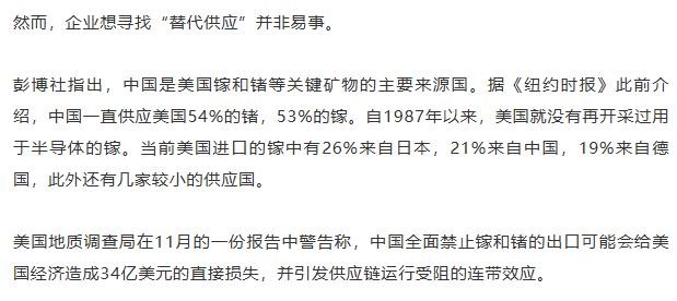 事实上,我国严控镓、锗、锑等两用物项对美出口在根本上是无法实现对老美“卡脖子”的。