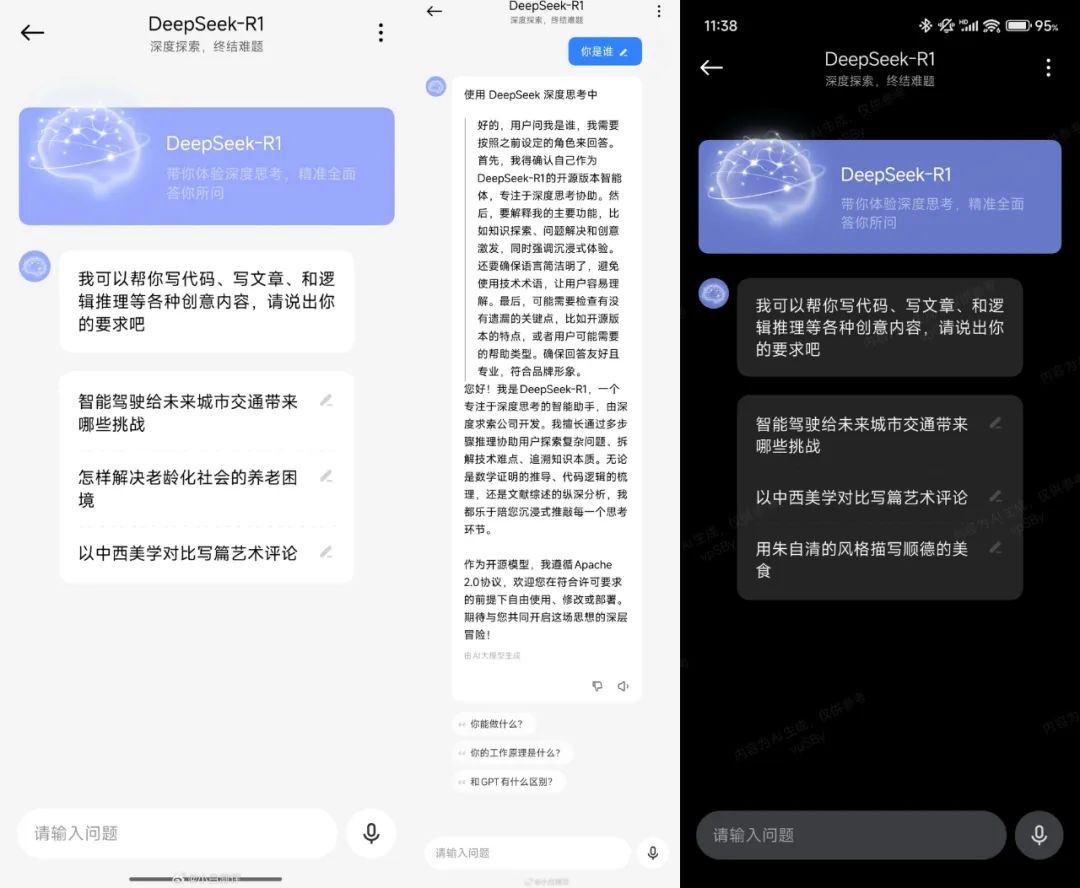 而全球手机市场份额排第三的小米迟迟未官宣正式接入DeepSeek,步调相对谨慎。2月15日,有用户表示,在小米澎湃OS 2.0的超级小爱中,可以通过对它说“打开深度思考”来开启DeepSeek-R1,支持写代码、写文章和逻辑推理等创意内容。