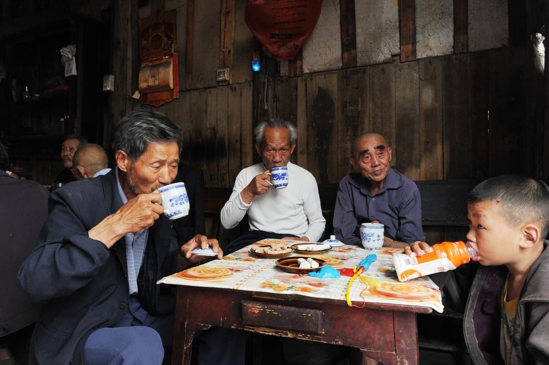 2011年,泸溪浦市茶馆,老人喝茶、小孩喝饮料