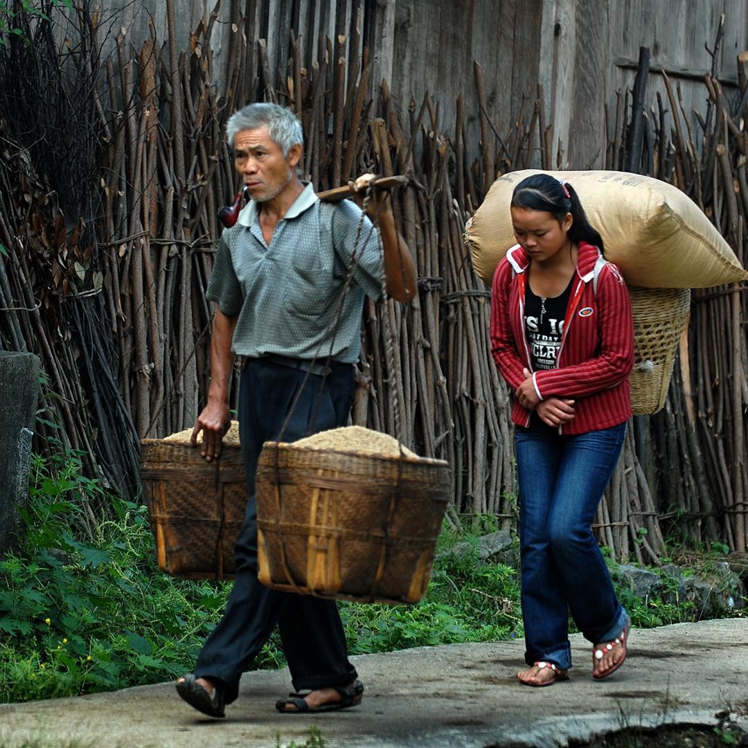 2008年,保靖葫芦镇木芽村,收谷子回家的父女