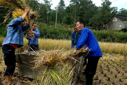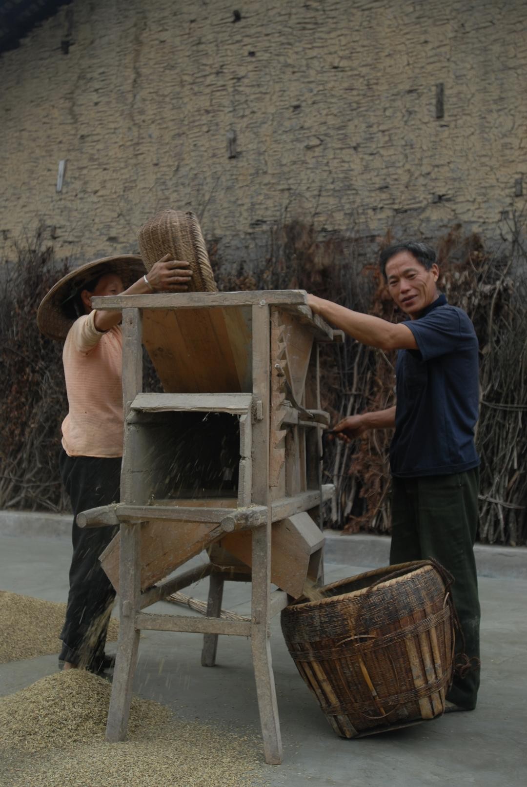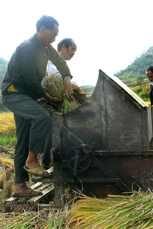 2008年,花垣雅酉,踩打谷机脱粒的村民