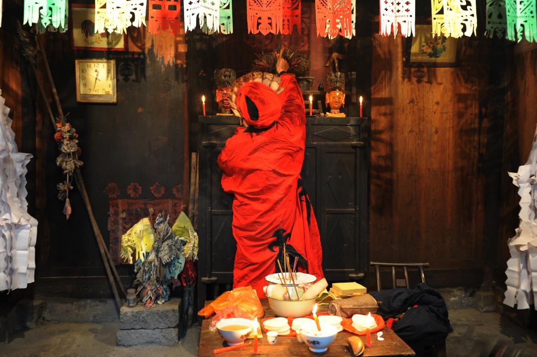 2011年,花垣董马库大洞冲村,苗族巴代扎祭祀上香