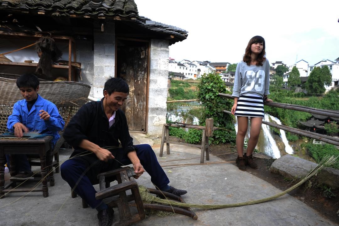 2010年,永顺芙蓉镇,在瀑布竹编店留影的时髦女郎