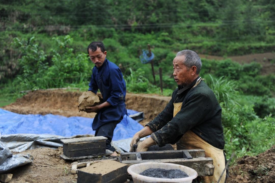 2011年,吉首马颈坳村民做正月十五钢火烧龙准备