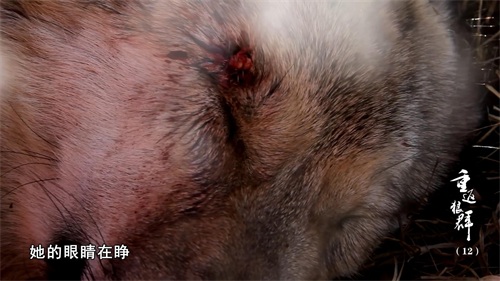 狼爸狼妈一直在想办法给女儿疗伤,但伤情太严重了,直到一天晚上飞毛腿腿也走不动路了,倒在草地里,奄奄一息了,眼睛还被乌鸦啄了。