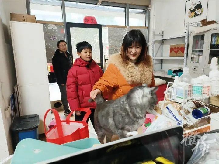 昨天下午,居民刘女士和儿子、老公来“动文会”看流浪猫。刘女士告诉记者,他们家想领养一只猫咪,有一只猫咪绕着她儿子的腿边打转,让她老公甚是心动。