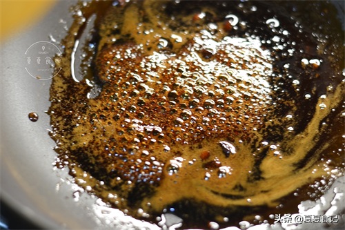 1、 锅中倒入红糖,然后滴入少量的开水,化开红糖,开小火熬至起泡。