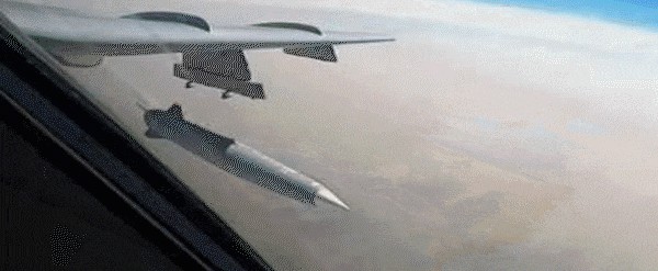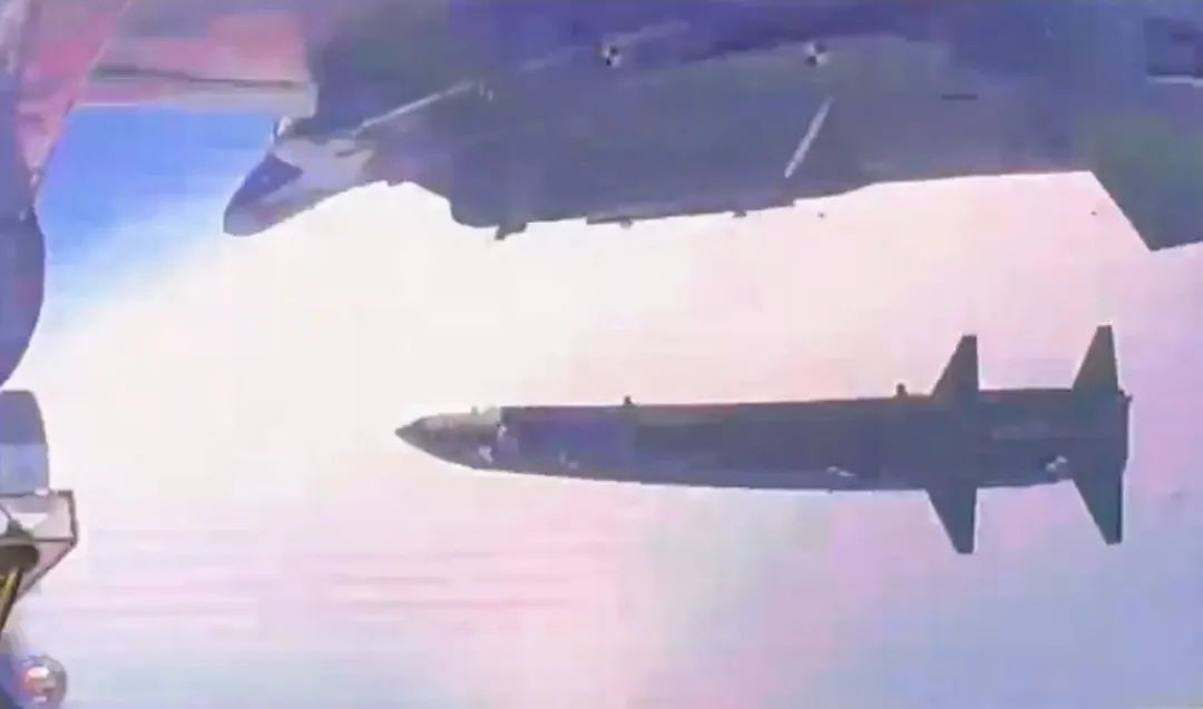 最后再来看看轰-6K释放“空地-21”高超音速空地导弹英姿: