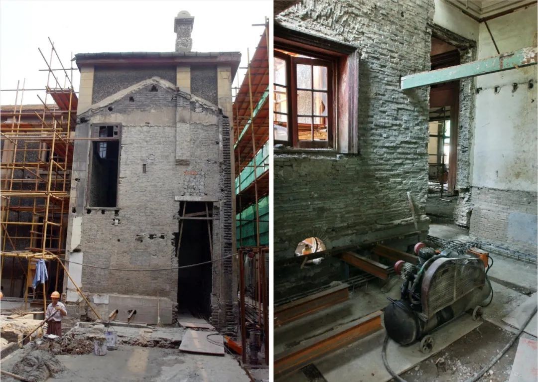 在对思南公馆进行保护性更新改造时,考虑到整体设计的和谐,设计师们将现在的思南公馆宴会厅整幢楼移转了90度,从东西向转为了南北向。移转过程中,对原来的砖瓦建筑构件逐一编号、小心拆卸、分类打包,移位后再按照顺序原样进行了复建。