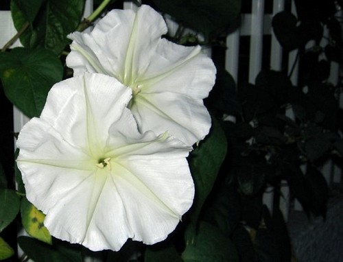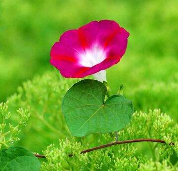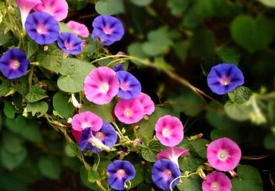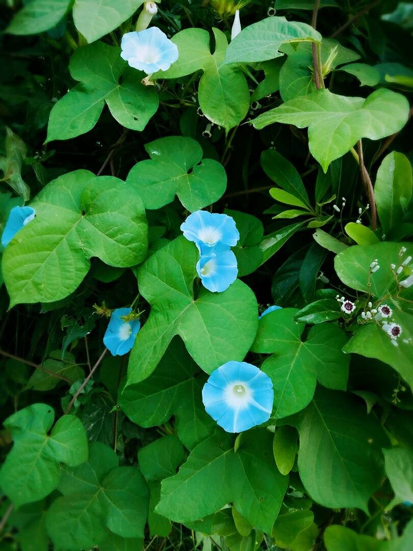 因为受故事的牵引,让我对夕颜花产生了浓厚的兴趣。原来夕颜花的真名叫月光花,也有叫瓠花或葫芦花的,是非常常见的一年生草本被子植物,喜欢在阳光充足和温暖的环境下生长,不耐寒,遇到寒霜就会被冻死。据说最早是哥伦布发现新大陆时在北美热带、亚热带看到过此花。早在哥伦布发现新大陆的几百年前,日本的古典文学中就有夕颜花这个名字。在我国南方地区很早也有见到,人们叫它葫芦花,但大多数是与之相对的“朝颜花”,老百姓叫它牵牛花,也有叫喇叭花的,我国云南叫嫦娥奔月,广西叫天茄子、天茄儿,系一年生的草本缠绕藤蔓植物。