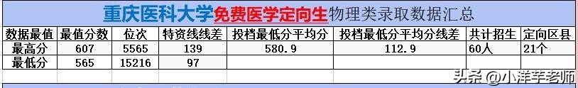 重医大临床医学免费医学生录取数据分析汇总