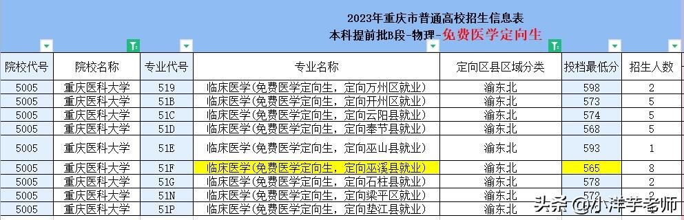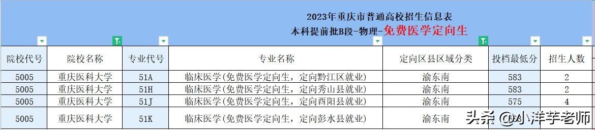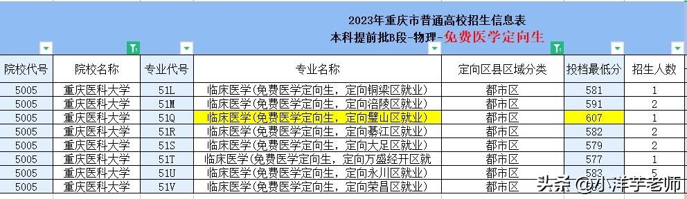 重庆医科大学2023年免费医学定向生录取分数分析,请关注!