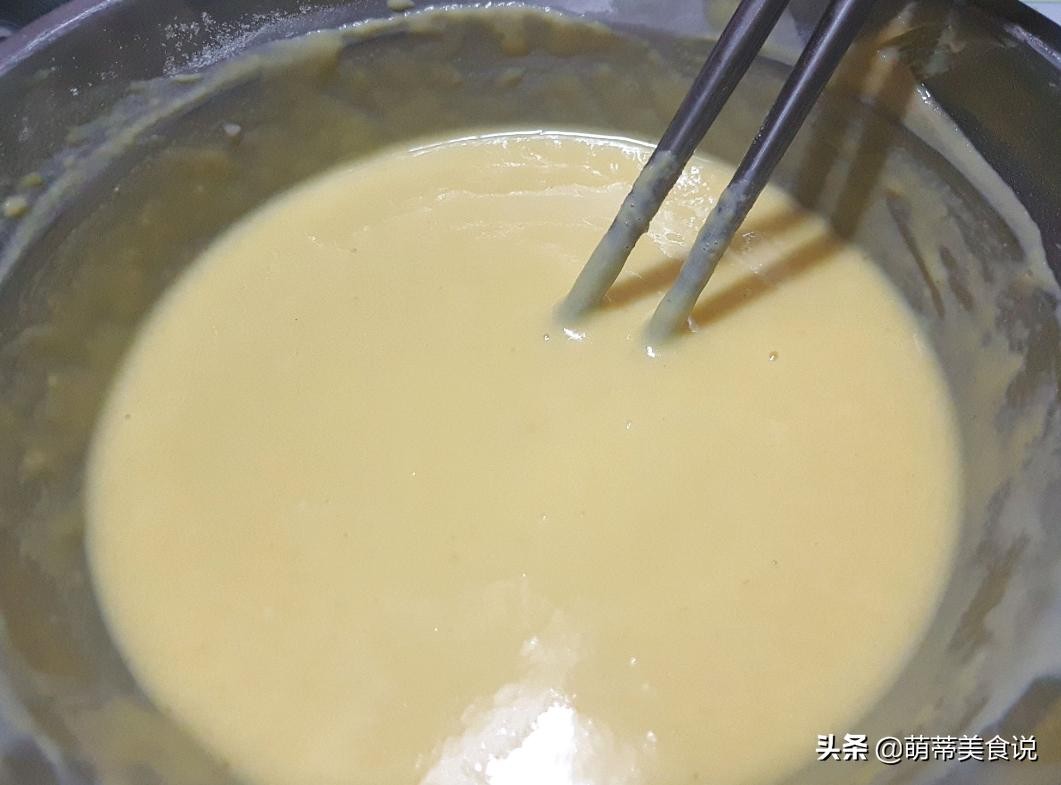 1.调制面糊的时候就不用加水了,因为咱们放了鸡蛋,这样炸出来的蘑菇更加酥脆。