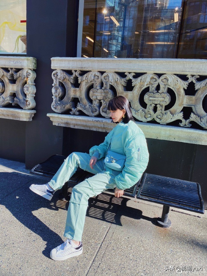 薄荷绿是今年超级流行一个颜色,相对于往常的绿色系的单品,薄荷绿会使整套look看起来更加青春,充满活力。
