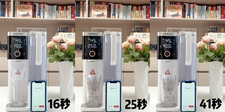 实测45℃150毫升泡奶粉水,仅需2秒出热水,18秒就能给宝宝泡好一杯奶,无论是45℃泡奶、65℃蜂蜜水,93℃咖啡等,全都一机搞定。