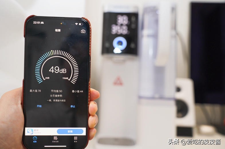 但也有不少朋友担心制水时的噪音问题,深夜实测为49db,完全不会打扰到家人的休息,可以说是很安静了,但是制冷模块的风扇分贝值会稍高些,也不影响到人。