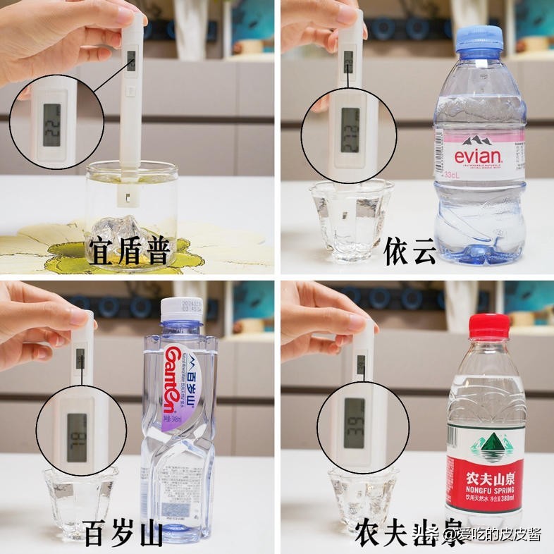 同时为了让大家进一步了解矿泉水的矿化效果对比,选取了依云、百岁山和农夫山泉,实测TDS值分别为272ppm、78ppm和39ppm,比较让人意外则是依云矿泉水了。
