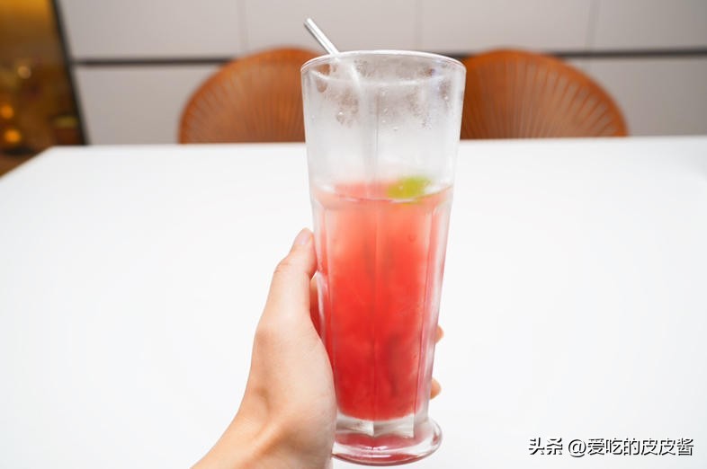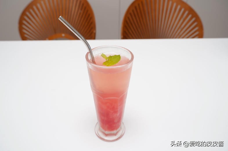 除了酸甜可口的百香果蜂蜜柠檬水,C位必须有解暑好喝的西瓜汁,感受来自炎炎夏日带来的解脱,将西瓜碾碎榨出汁,加入过滤好的冰水,结合薄荷叶的清凉,美滋滋。